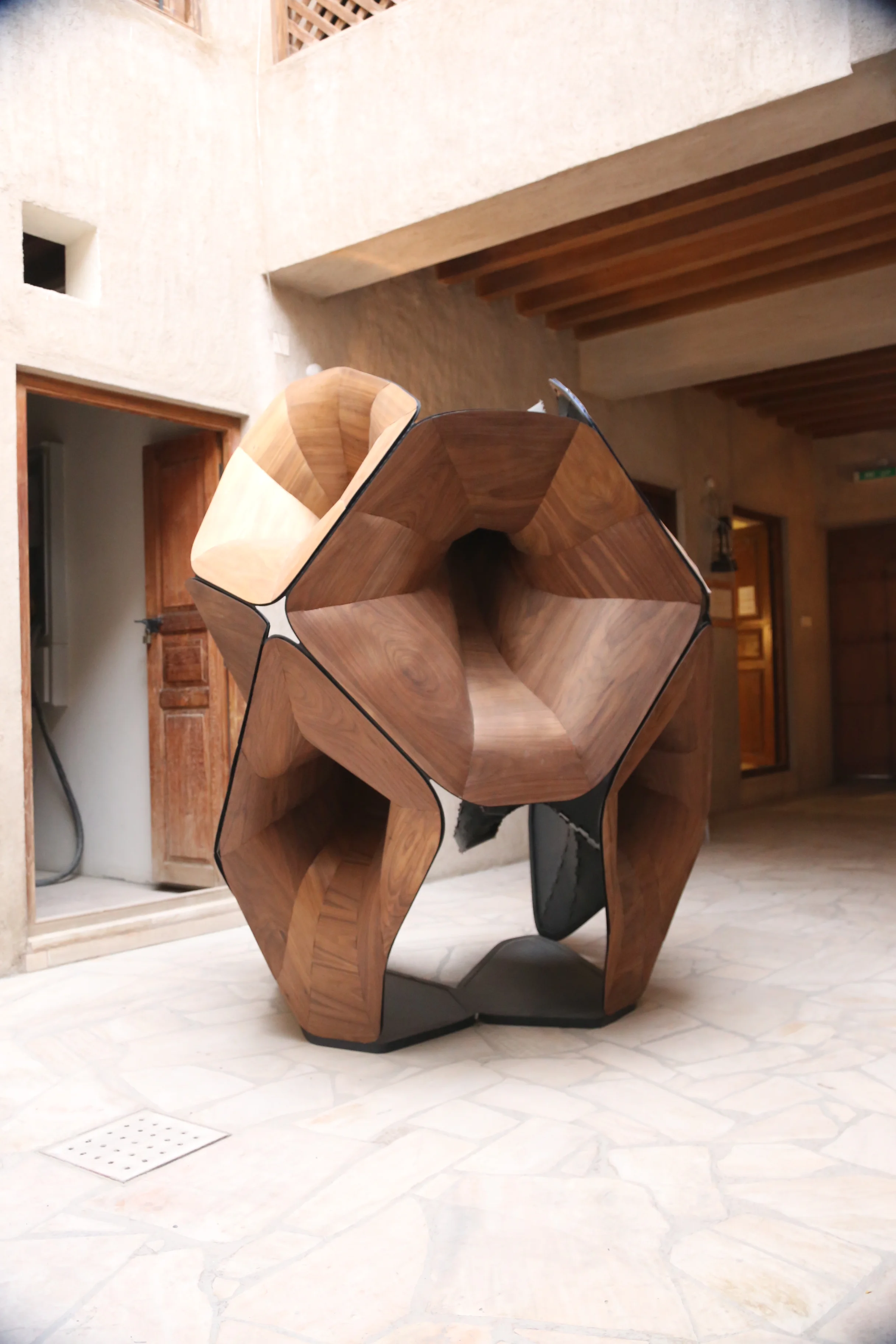 Designed for the context of the Al Fahidi cultural district, Dubai's oldest settlement, Resonant Surface combines acoustic performance and contextual aesthetics through a study of musical instruments and Islamic geometry.